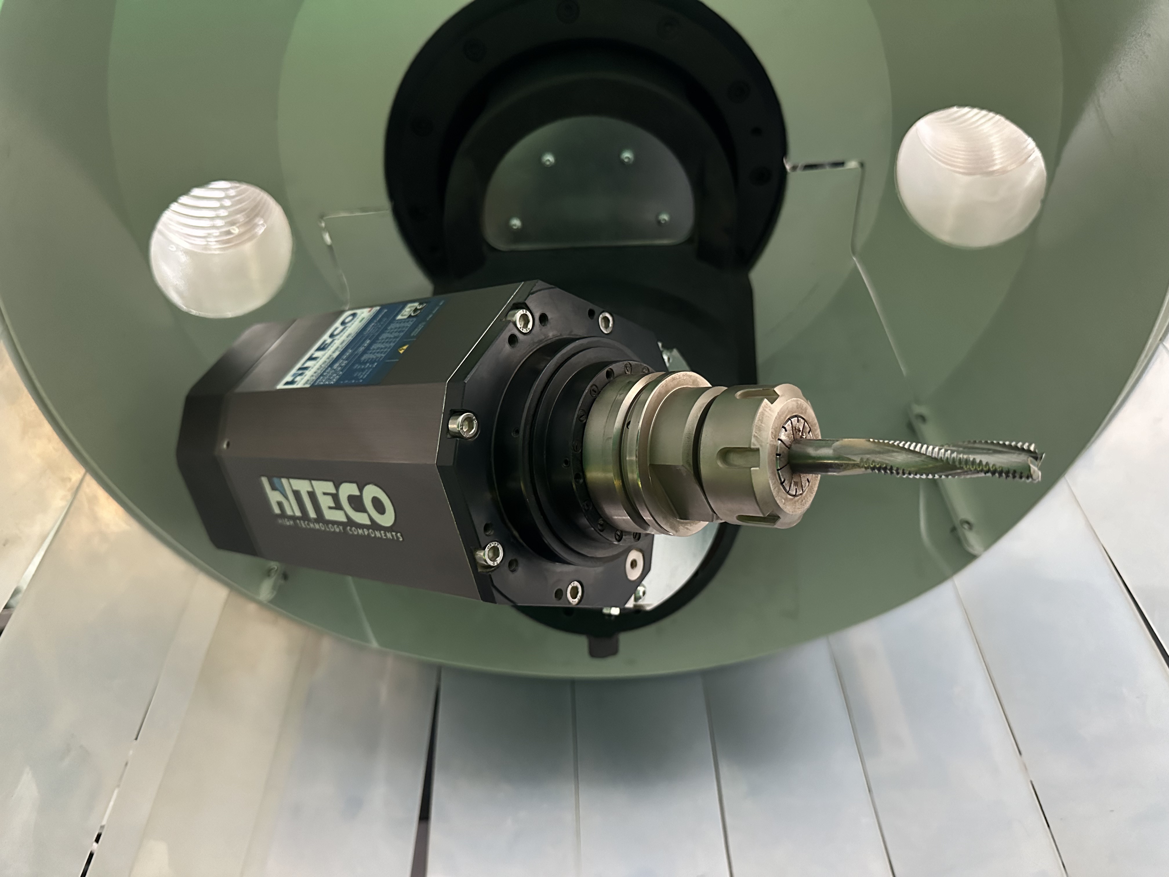 Hiteco 10 kw, 5 Axis A axis ±185 degrees, C axis ±320 degrees air cooling spindle with HSK-F63 tools.